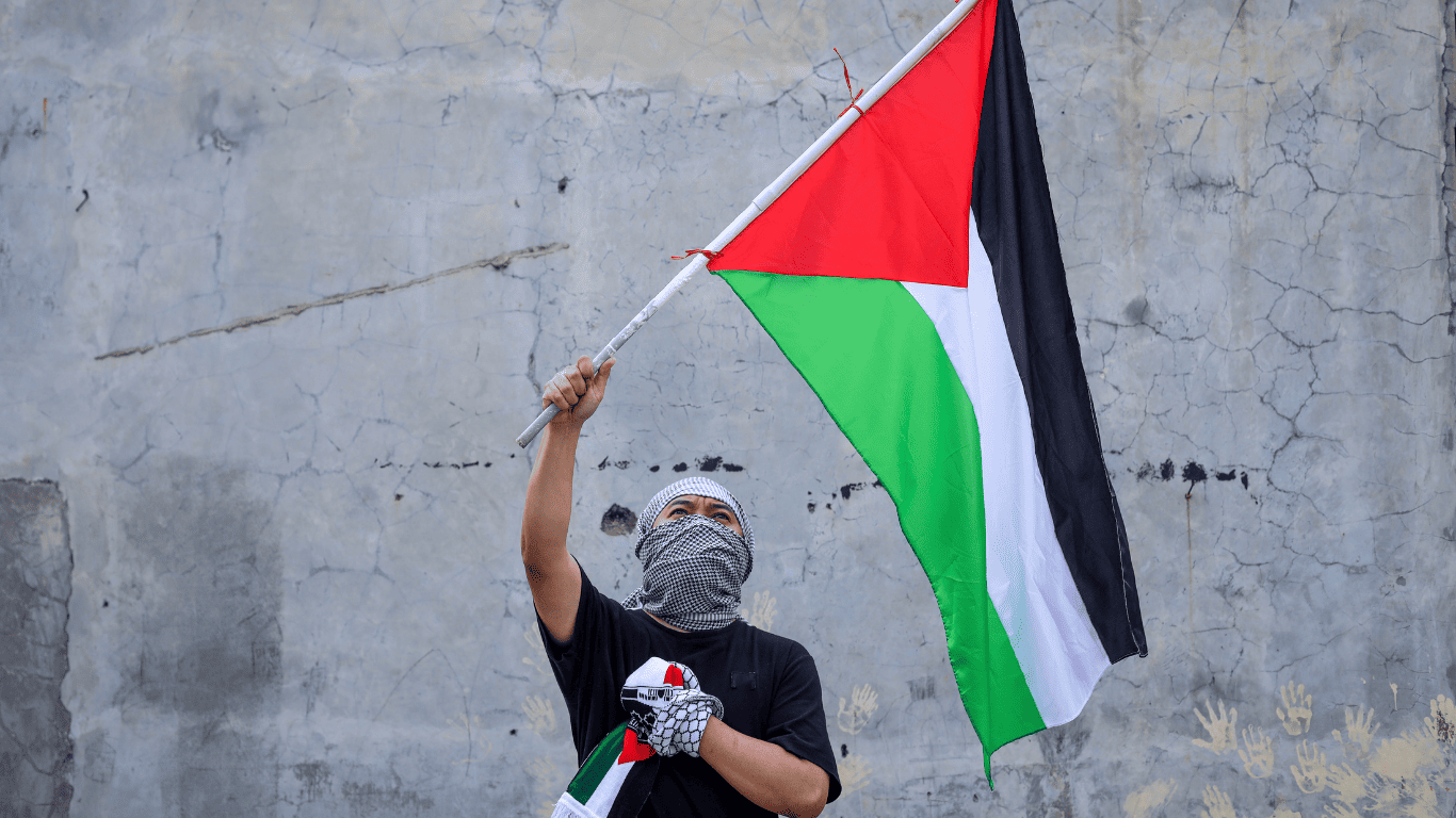 IMAGEM 2; meta-descrição: Manifestação pró-Palestina em cidade ocidental; legenda: Movimentos sociais desafiam narrativas hegemônicas sobre a Palestina [Fonte: Reuters]